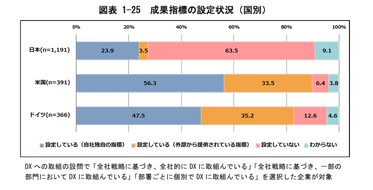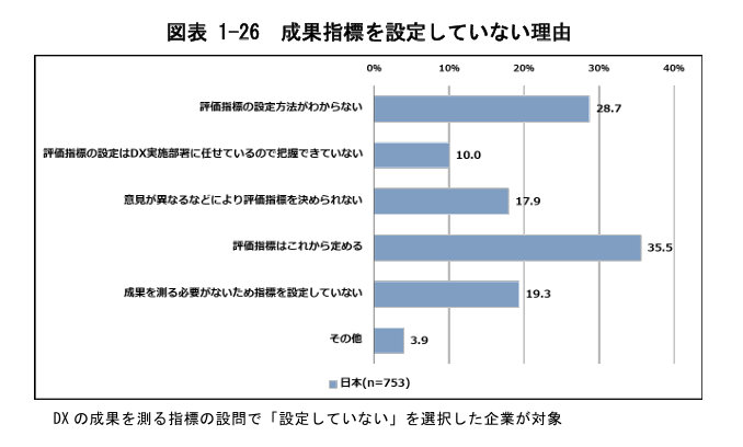 評価指標が決められていないということは、DXの取り組みによる投資対効果が見えにくく、経営層の理解を得ることは困難です。DX推進チームのモチベーション低下にもつながる恐れがあります。