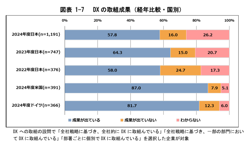 📊 ポイント①:DX取組企業は増加も、日本は「成果創出」で苦戦