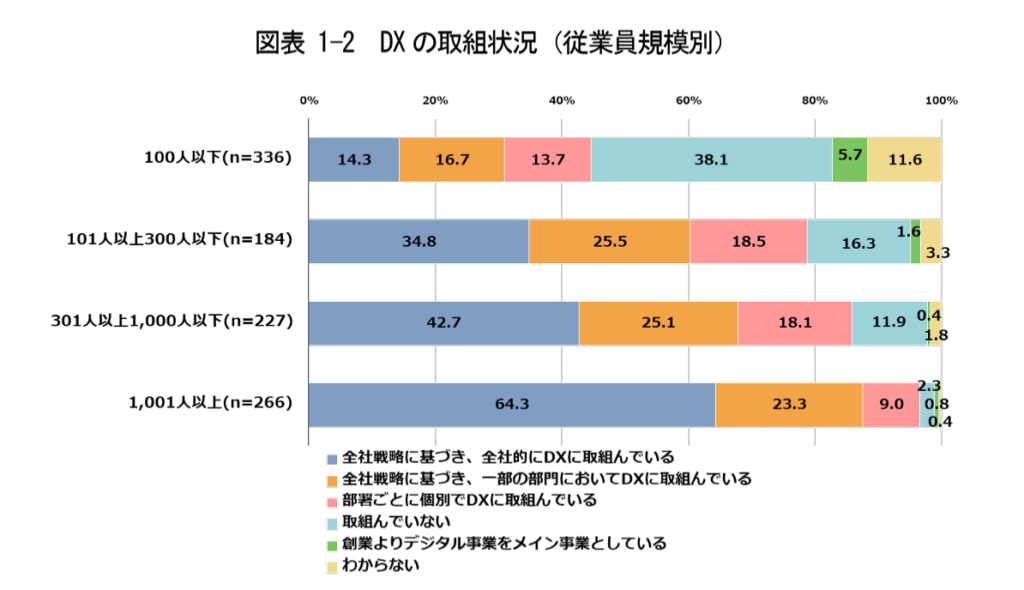 中小企業のDXが進みにくい理由 IPAの「DX動向2024」では、企業規模が大きいほどDXの取組が進む傾向が示されています。