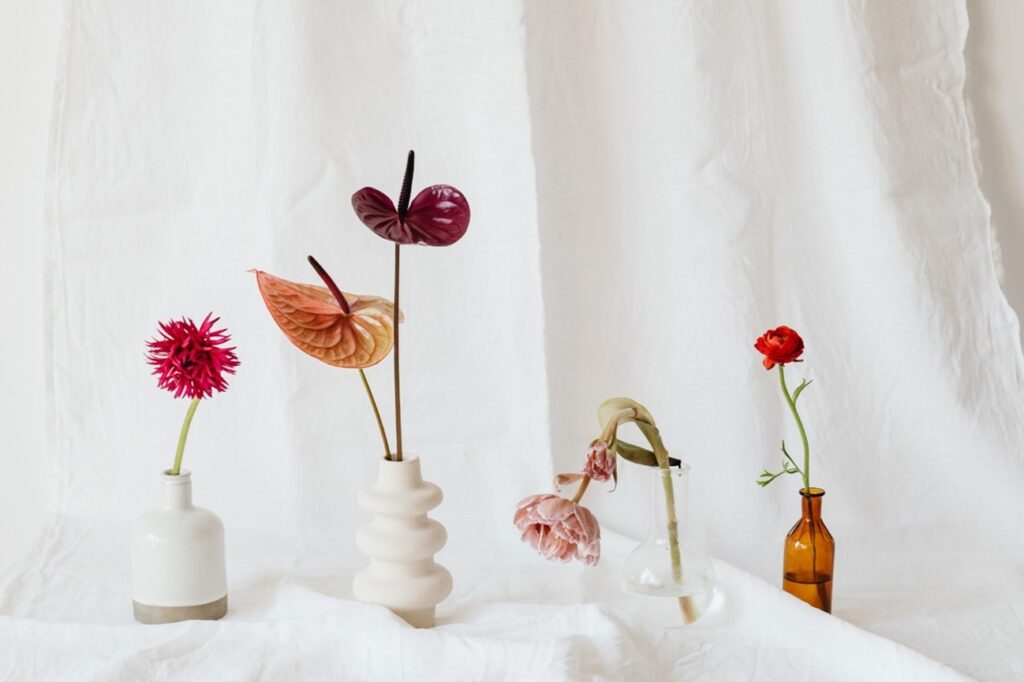 一輪の花を手に取り、「どの角度が一番美しいだろう」と考える。