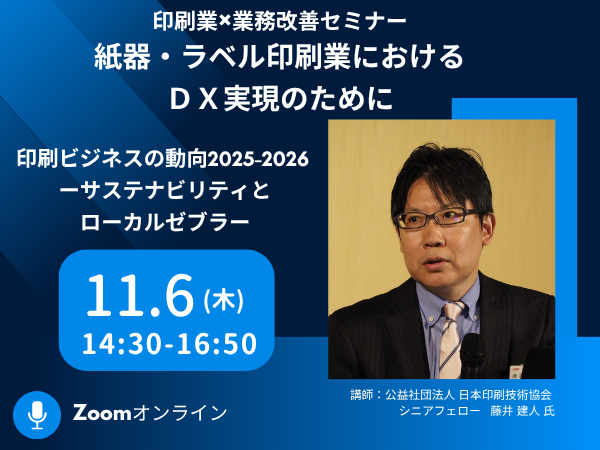 今回は、『印刷ビジネスの動向2025-2026』と『紙器・ラベル印刷業におけるDX』をテーマに企画を致しました。経営者の皆様はもちろん、情報システムご担当者様必見の内容となっておりますので是非ご参加下さい。