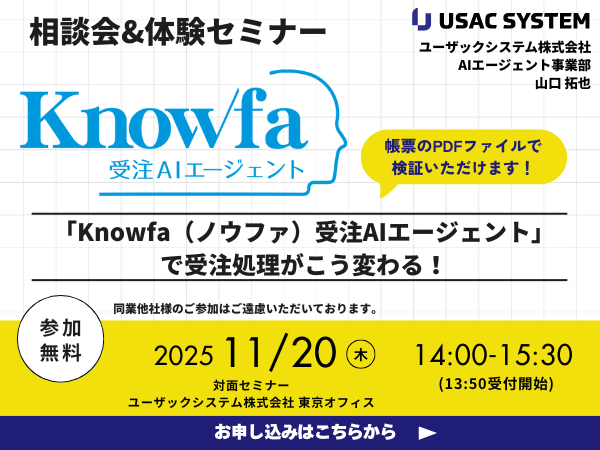 【11/20 相談会&体験セミナー】 「Knowfa(ノウファ)受注AIエージェント」で受注処理がこう変わる!