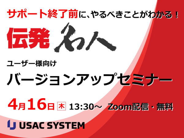 サポート終了前にやるべきことがわかる! 伝発名人ユーザー様向けバージョンアップセミナー