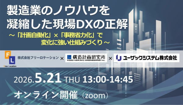本セミナーでは、「製造業のノウハウを凝縮した現場DXの正解」と題し、変化に強い現場をつくるために必要なポイントについての基調講演と、「計画自働化」「事務省力化」を実現するツールをご紹介します。