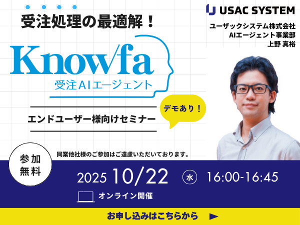 【デモあり!】業績アップの鍵はAIエージェントの活用! 受注処理の最適解 新サービス「Knowfa(ノウファ)受注AIエージェント」セミナー